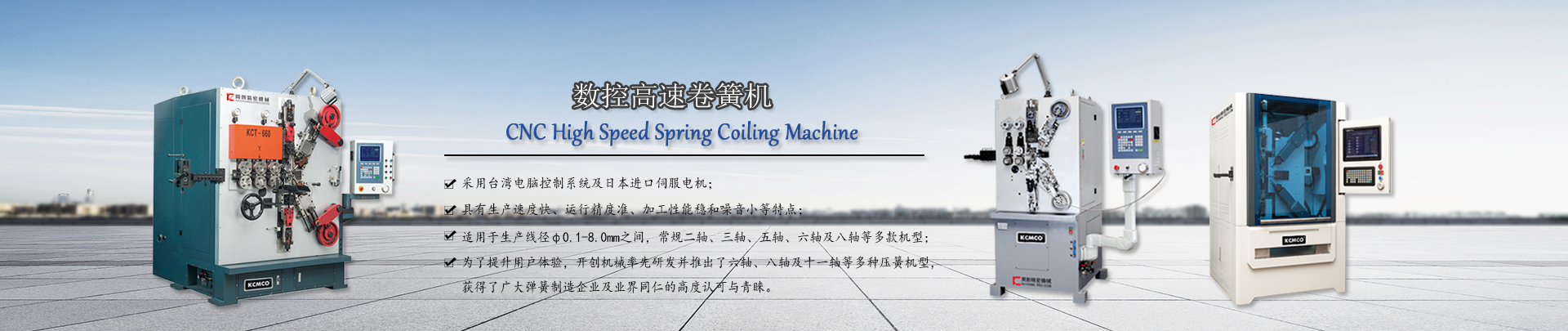 主營產品: 彈簧機械   全自動彈簧機   數控彈簧機   電腦彈簧機   數控高速卷簧機   數控萬能彈簧機   無凸輪彈簧機   電腦壓簧機   八爪彈簧機   轉線彈簧機   彈簧機價格